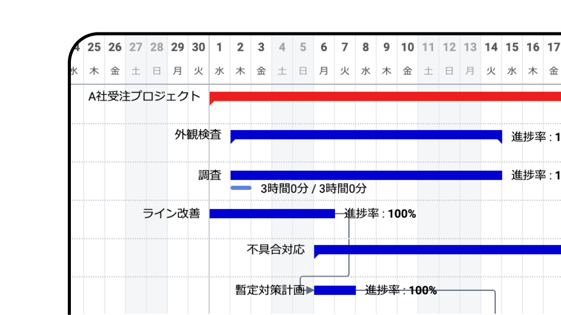 - プロジェクト、メンバー、業務項目単位でリアルタイム集計