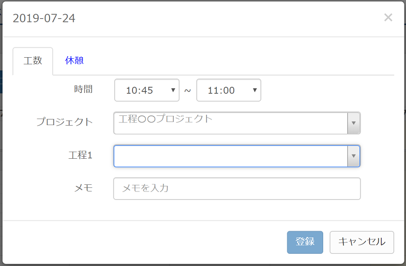 工程のプロジェクトを選択した場合は、「工程」「メモ」などの従来と同じ項目が表示され、