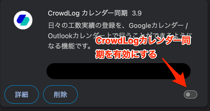 - クラウドログの拡張機能のスイッチを「オン」に切り替えます。