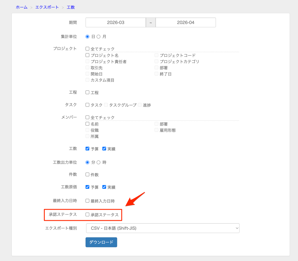 この度、工数エクスポート機能において「承認ステータス」を出力できる機能を追加いたしましたのでお知らせいたします。