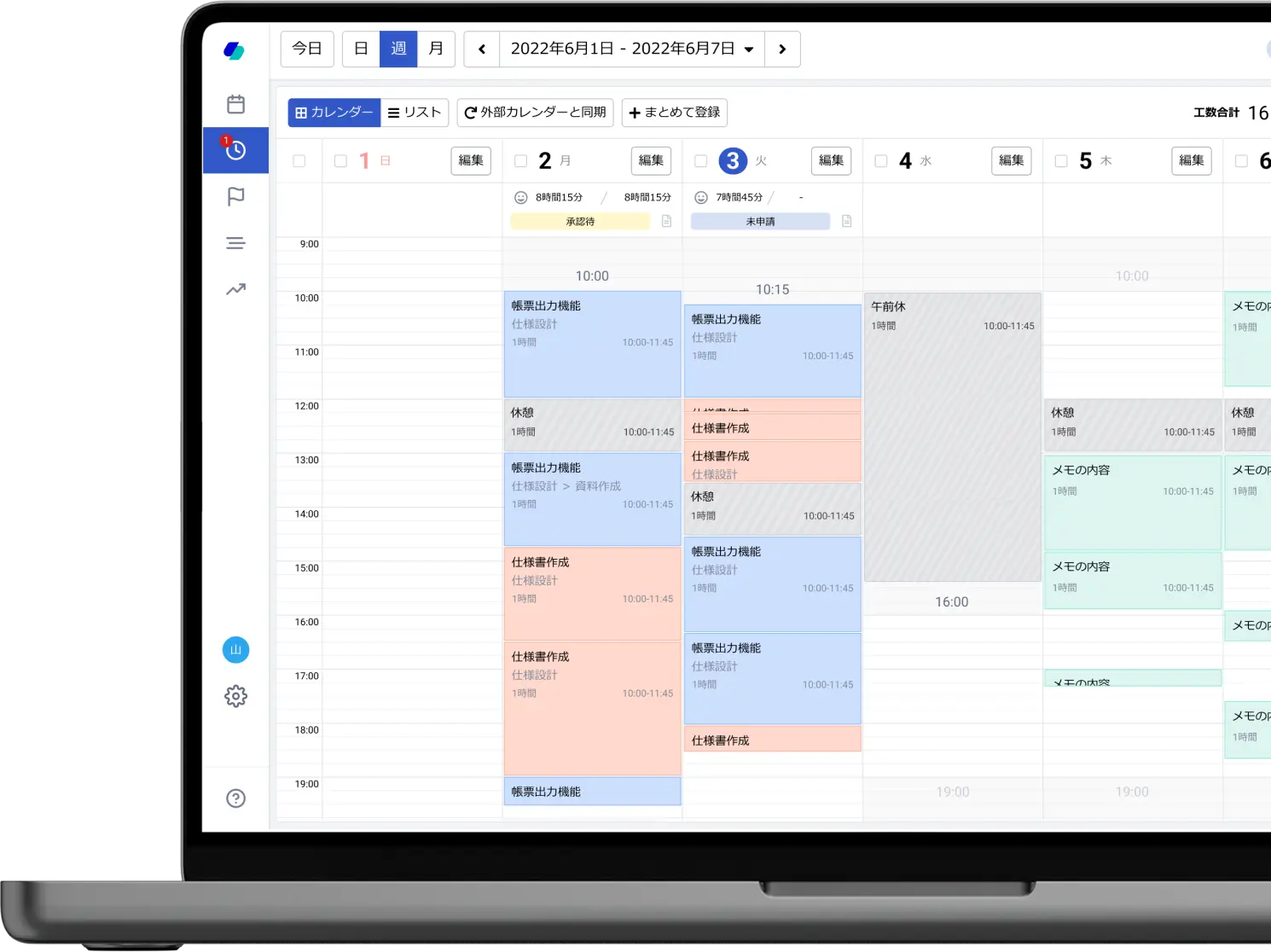 GoogleカレンダーやOutlook、スマートフォンから1日1分で半自動的に入力できます。